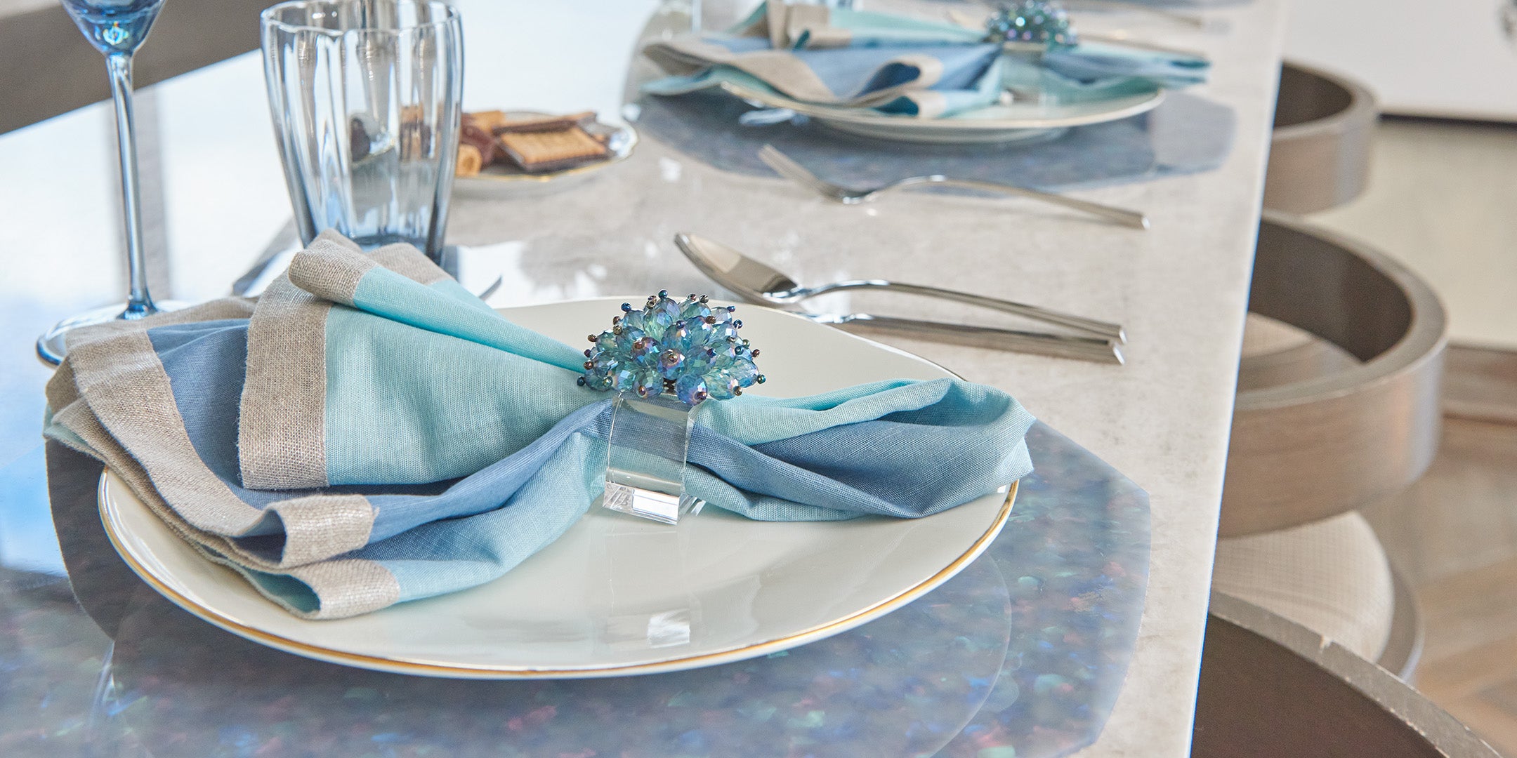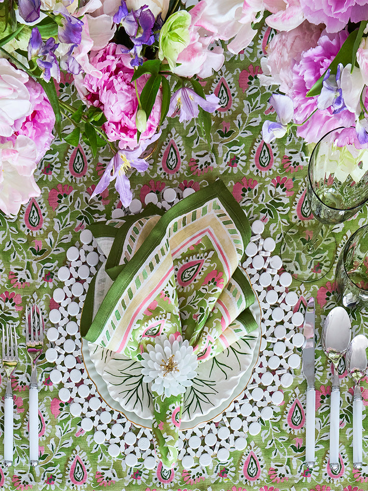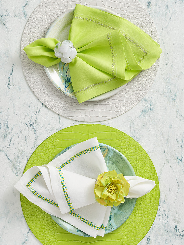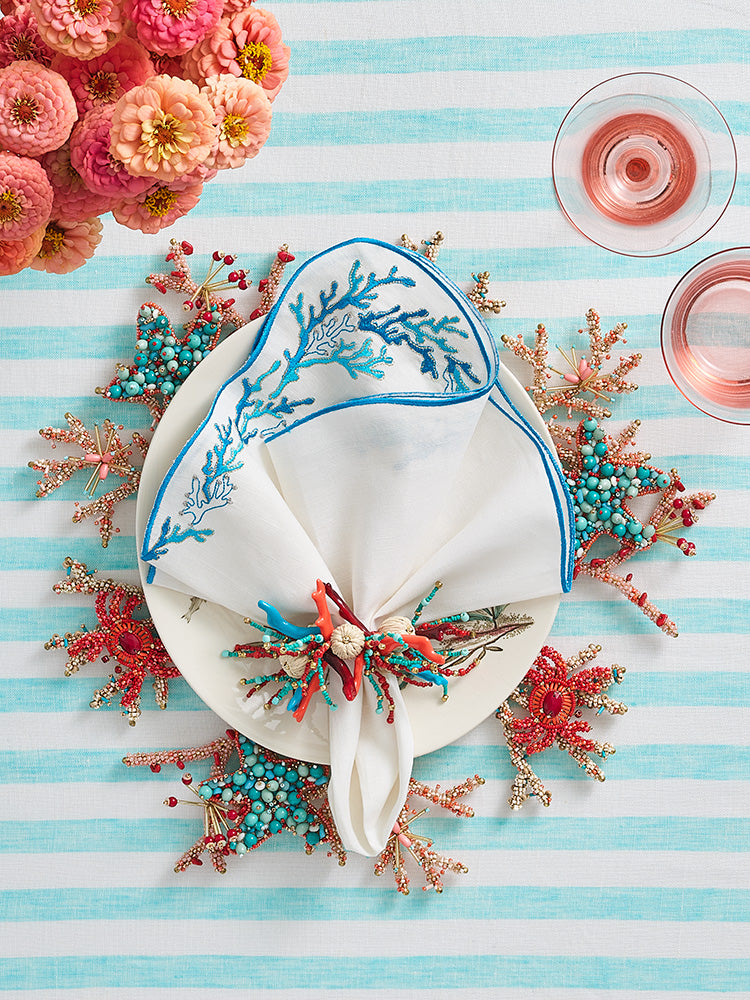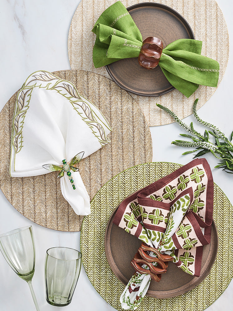 "A brand known for elevating tabletops with its often lavish materials for placemats, napkins, and napkin rings.”