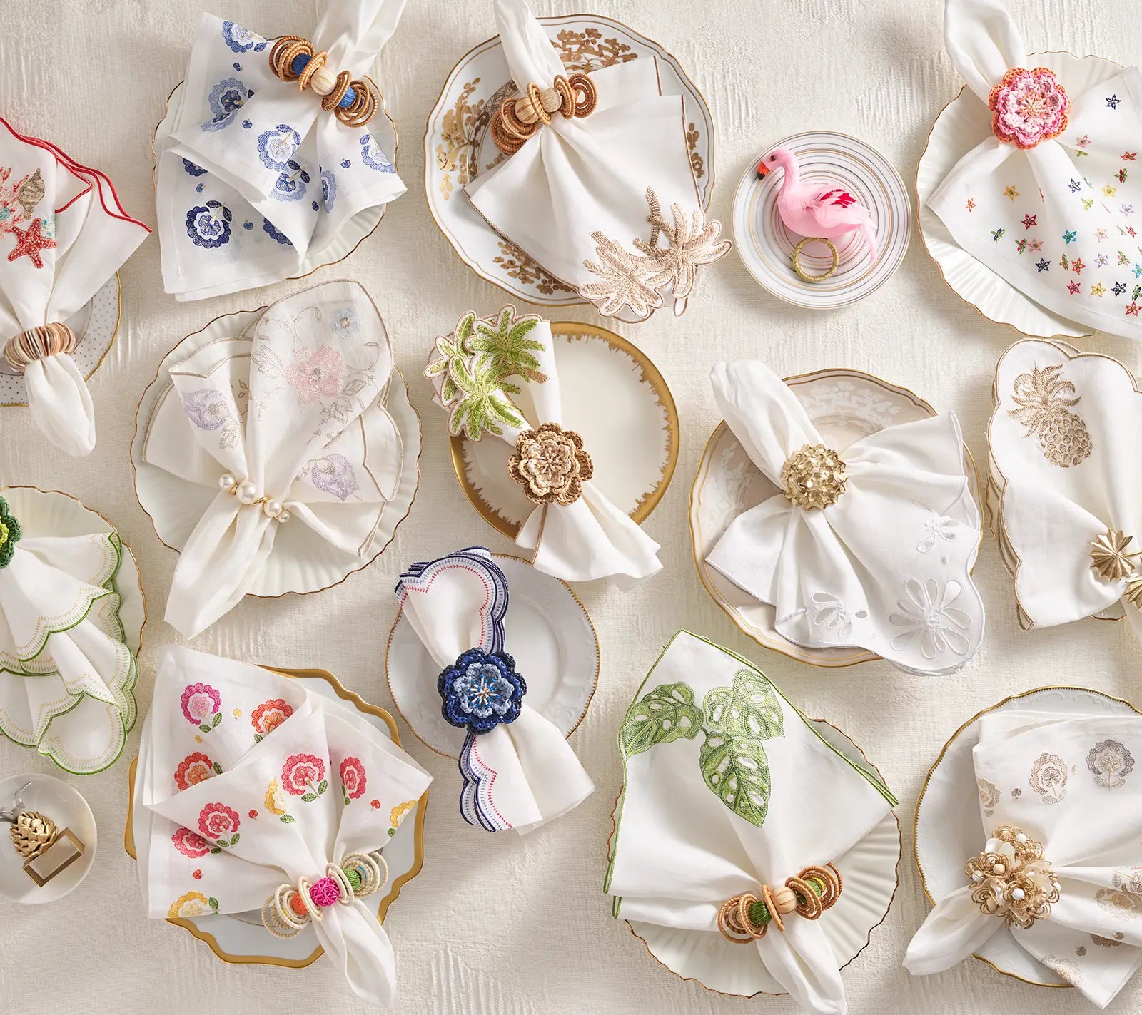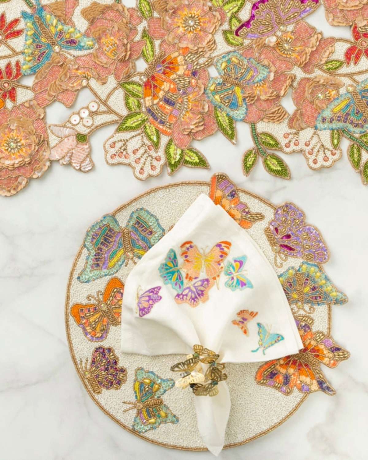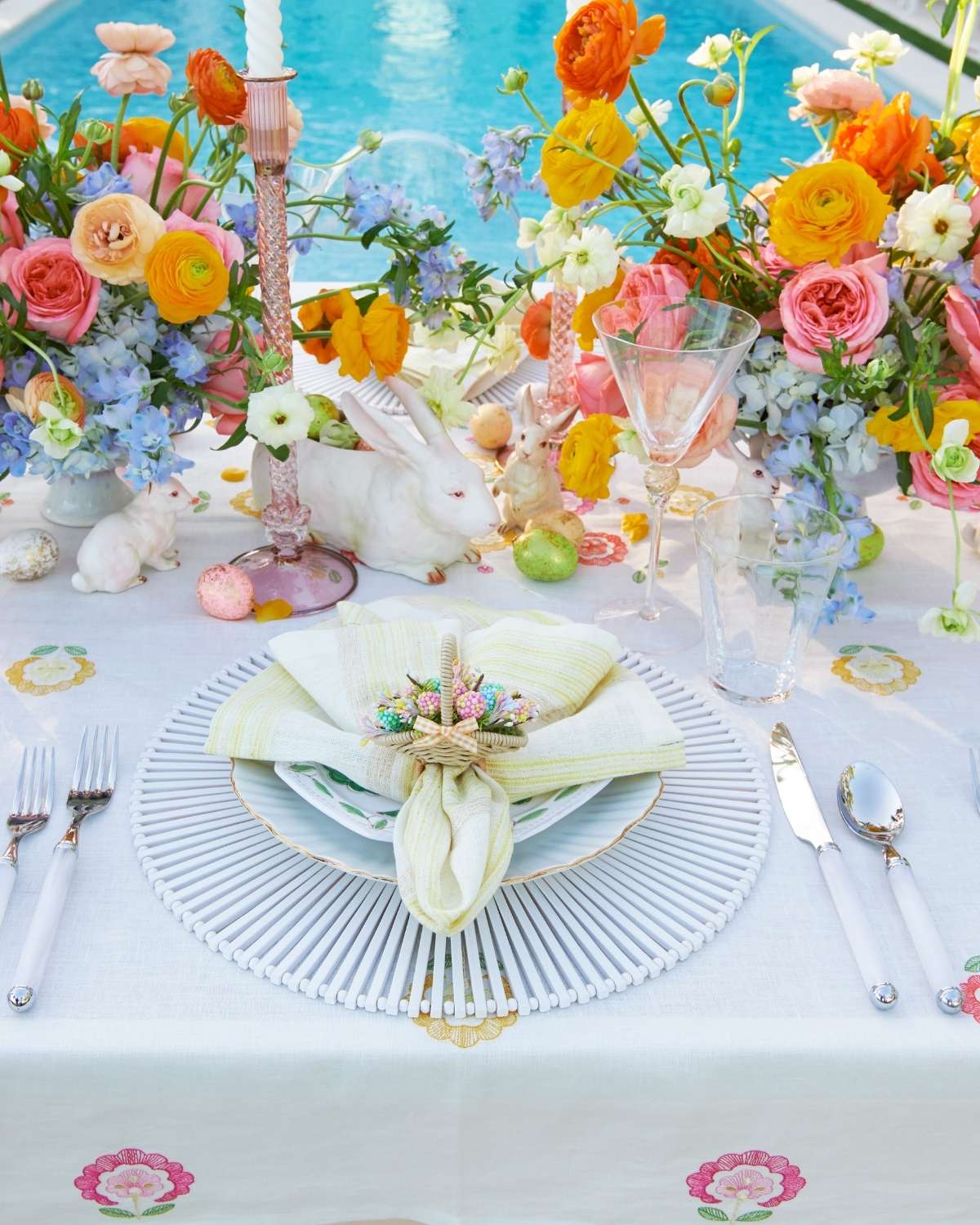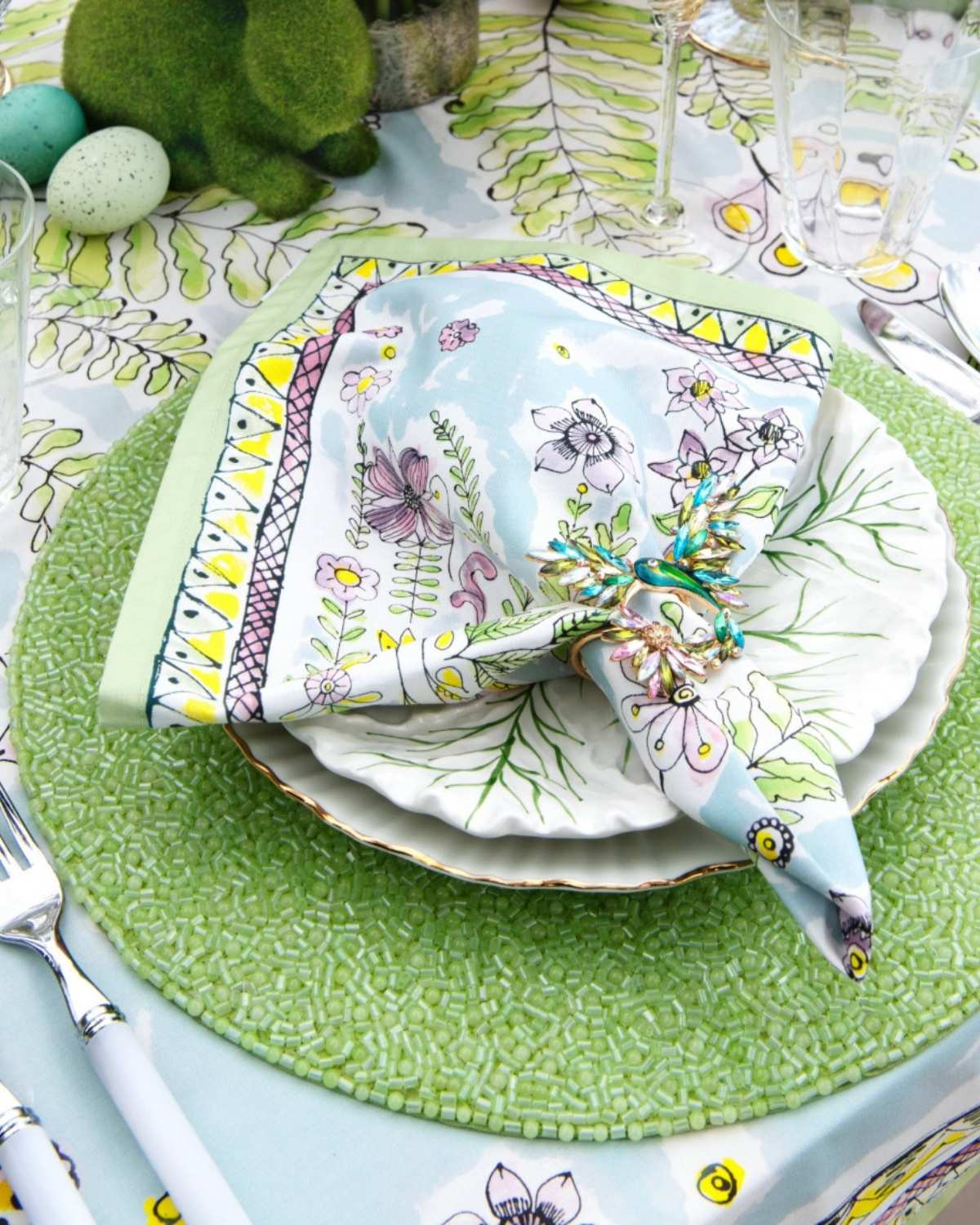 “Kim Seybert’s beautifully elaborate Dahlia Table Runner is the ultimate way to ring in springtime and complete your Easter tablescape.”