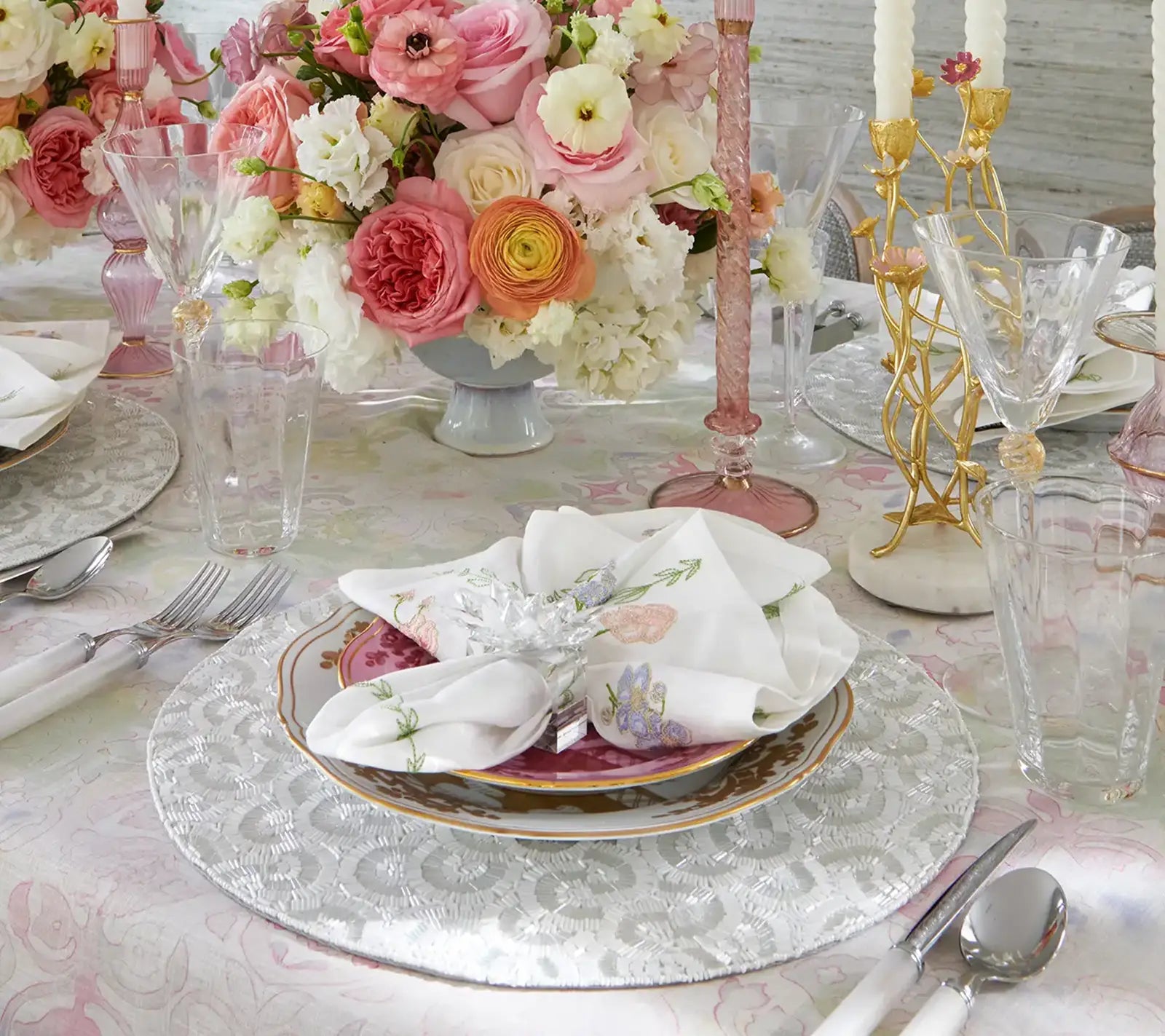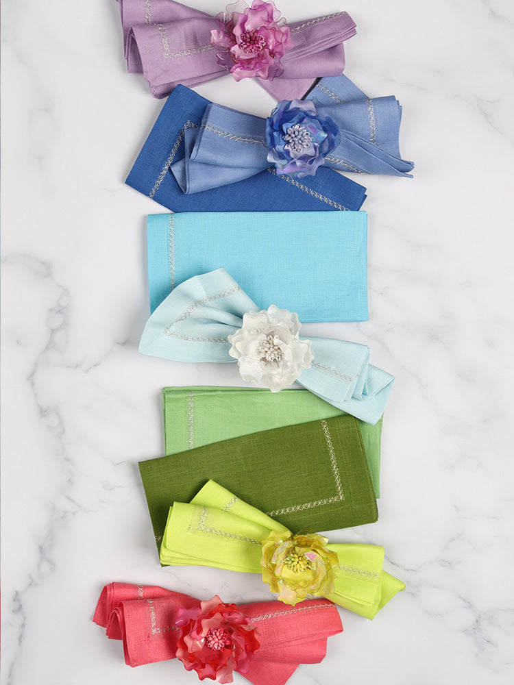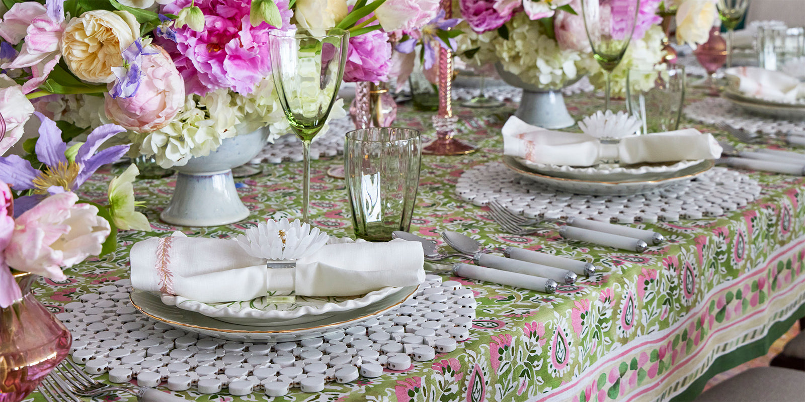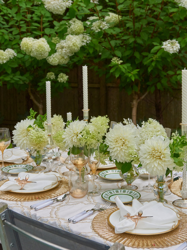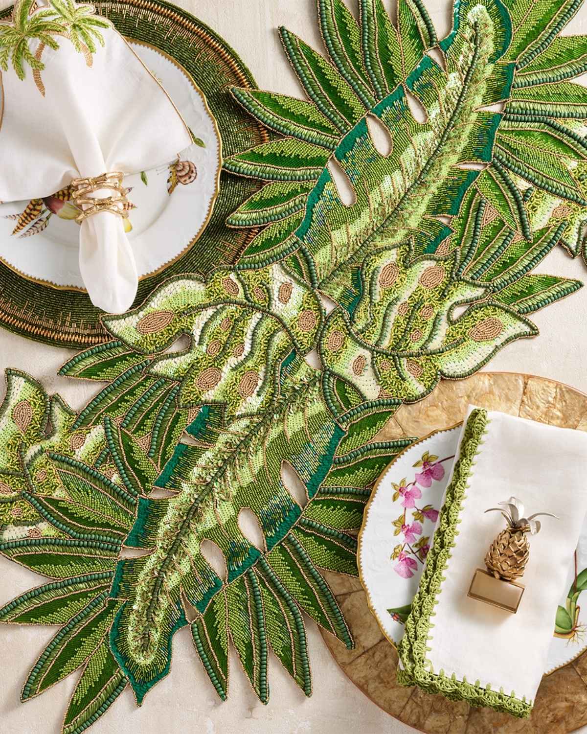 “Kim Seybert’s beautifully elaborate Dahlia Table Runner is the ultimate way to ring in springtime and complete your Easter tablescape.”