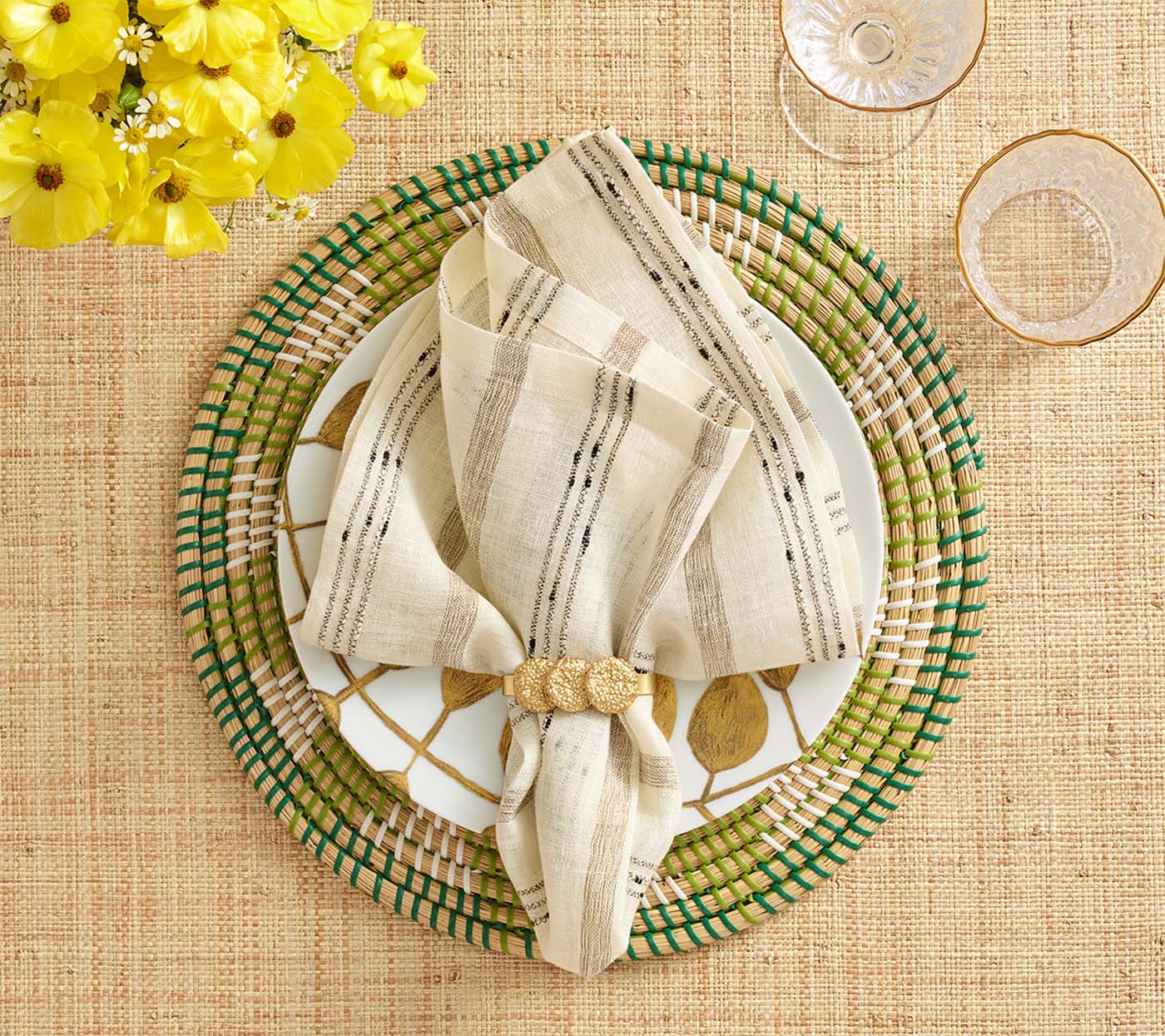 Oasis Napkin in Ivory, Green & Brown, Set of 4