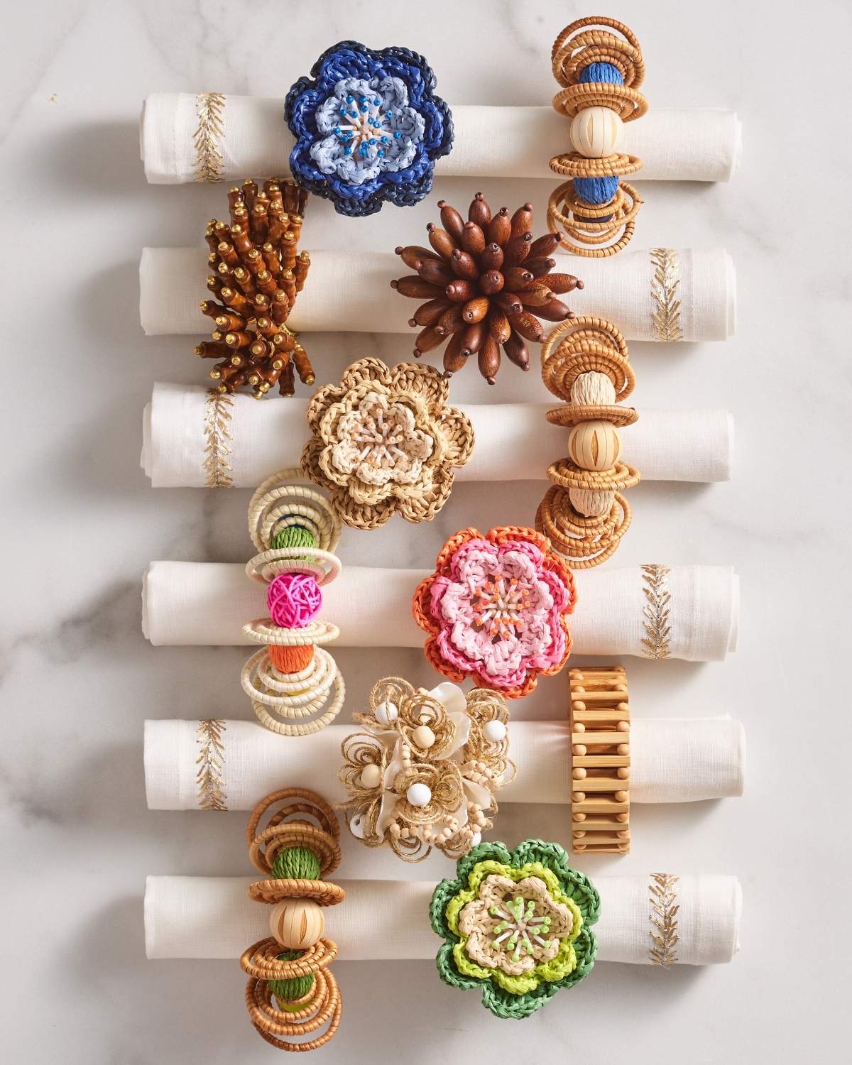 Bloom Napkin Ring in Natural & Multi, Set of 4