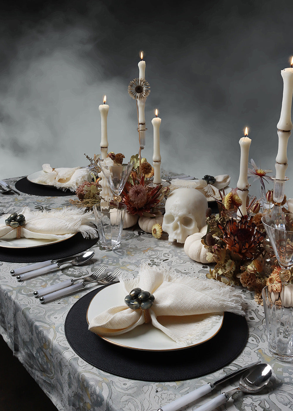 “Kim Seybert’s beautifully elaborate Dahlia Table Runner is the ultimate way to ring in springtime and complete your Easter tablescape.”