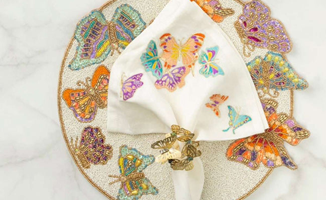 Spring is all about renewal and freshness. Embrace pastel hues such as mint green, soft pink, and lavender. These delicate colors evoke a sense of new beginnings and rejuvenation, making them perfect for springtime gatherings. To enhance this palette, incorporate light, airy fabrics and floral patterns, and complement the look with fresh flowers and greenery. The Gardenia Runner is a perfect example of a spring design, featuring pale blues and yellows. Its three-dimensional effect and stunning beads add just the right amount of subtle sophistication to make any dining table stand out.
