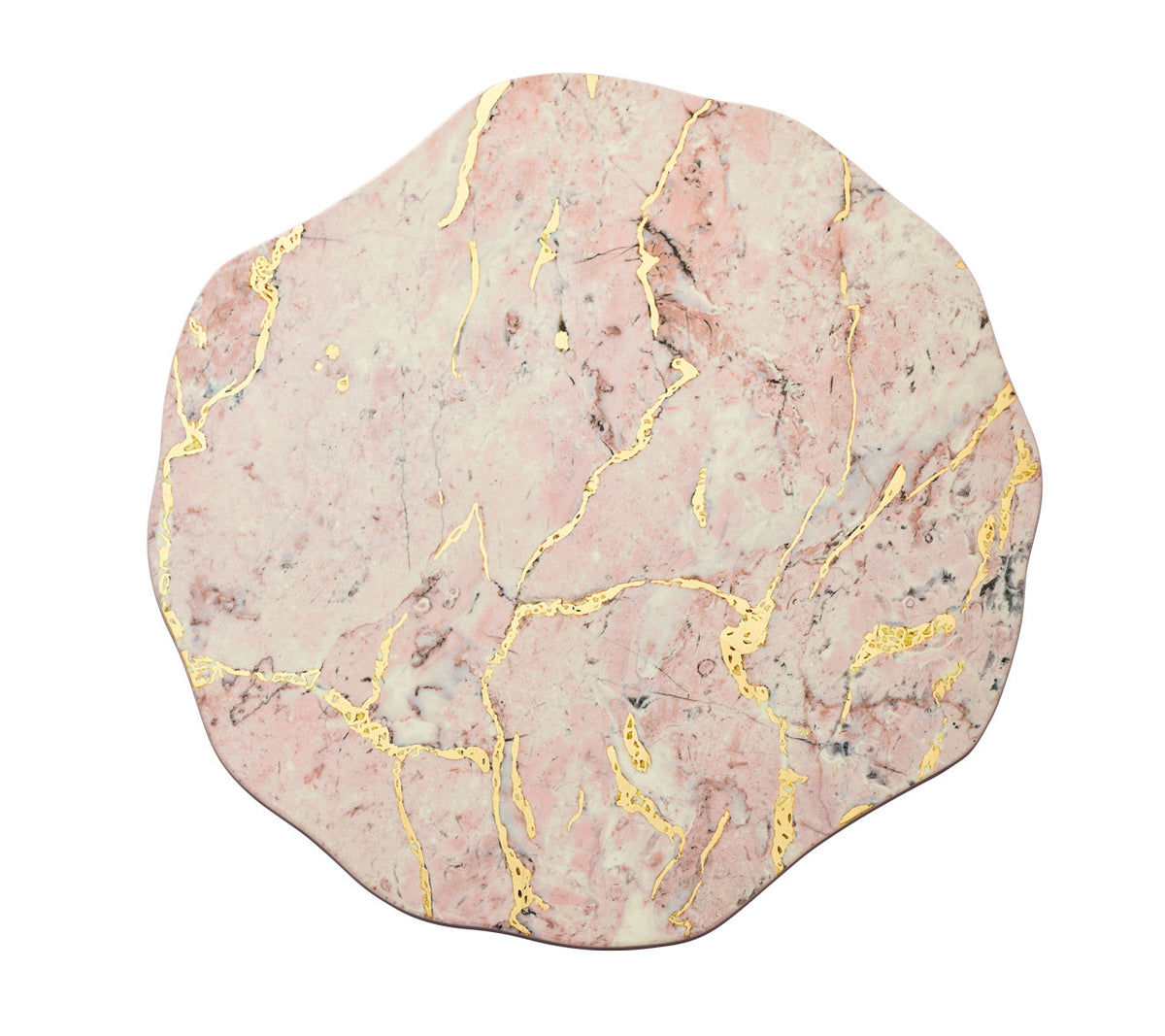 A placemat developed exclusively for Neiman Marcus with the pink quartz with gold veining design.