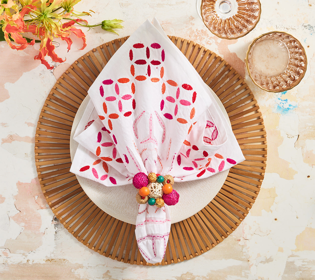 Guided by the mission to make luxury accessible, this capsule collection presents our table decor at new, approachable prices. Crafted with our signature artistic techniques and exceptional quality, this nature-inspired series features colorful block-printed napkins, hand-woven placemats, and versatile napkin rings for every entertaining style.