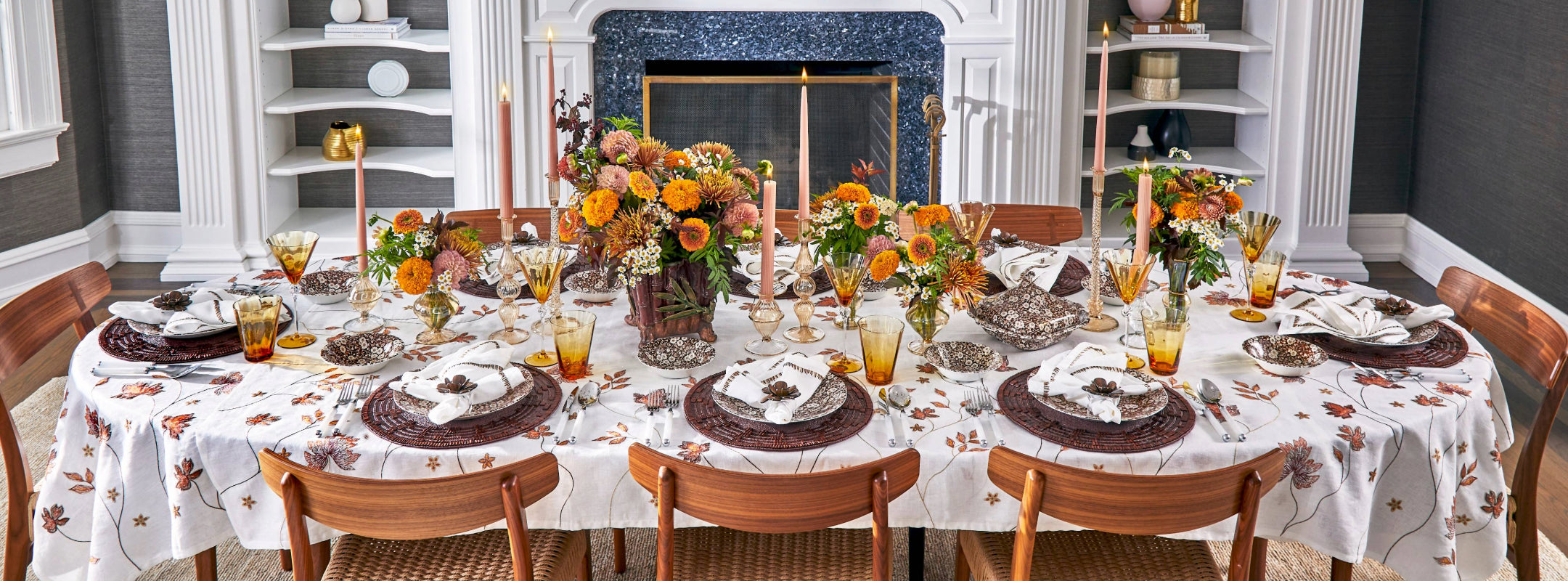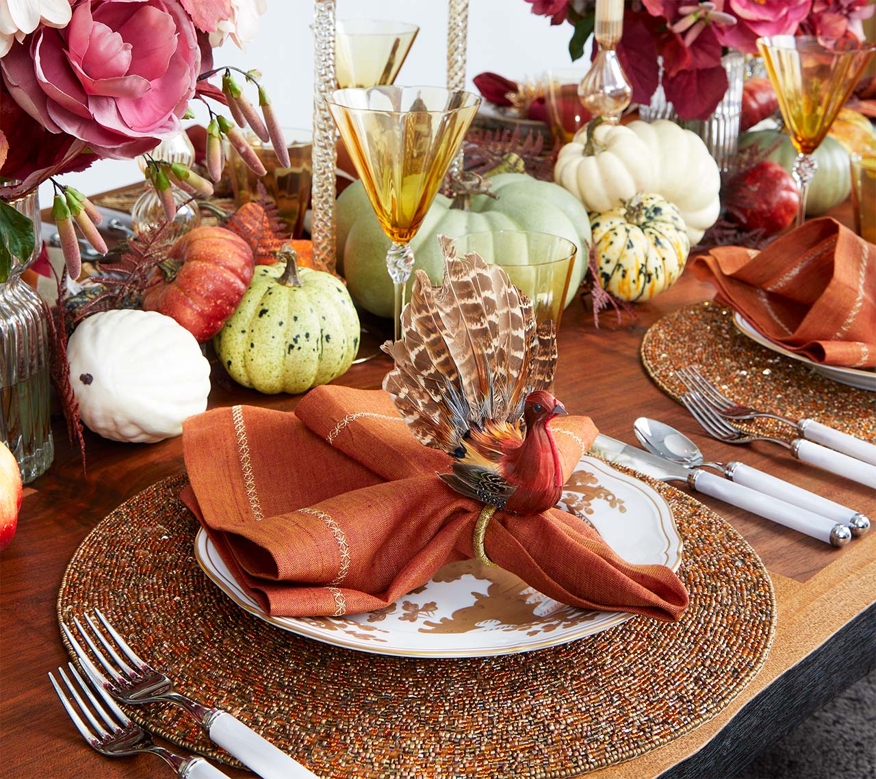 Discover our curated collection of fall and Thanksgiving-themed placemats, napkins, and napkin rings to create your perfect autumnal setting. Explore a variety of organic shapes, artisanal beaded pieces, and stunning glassware that will elevate your seasonal gatherings.