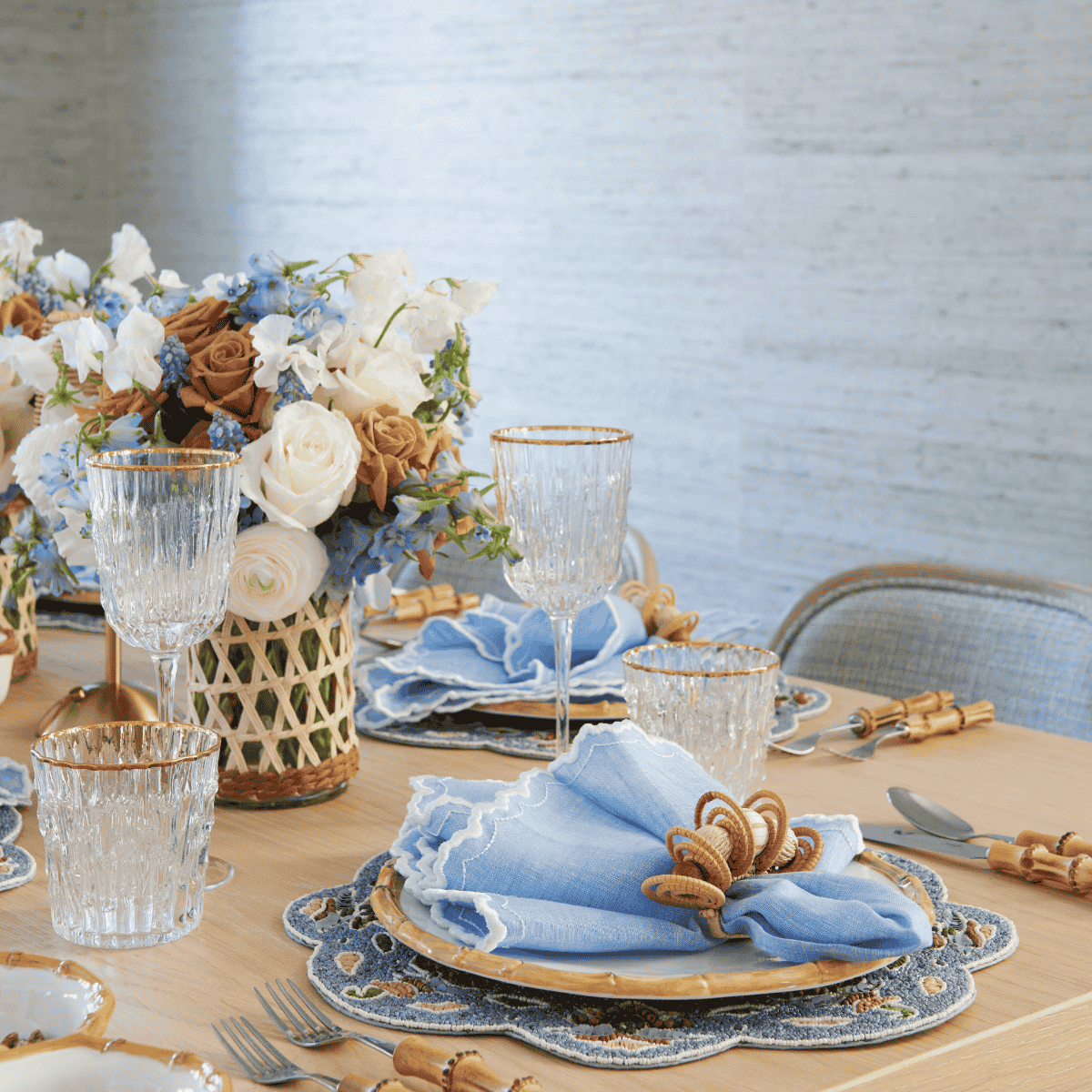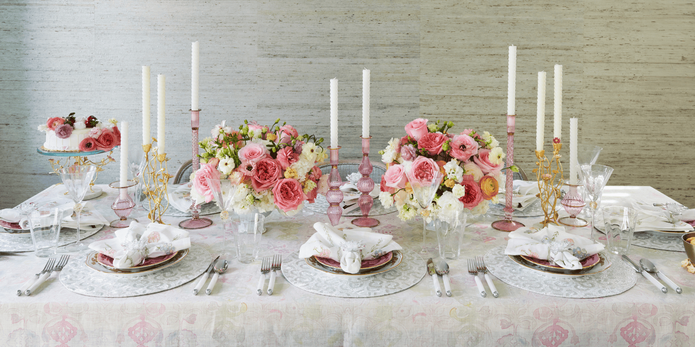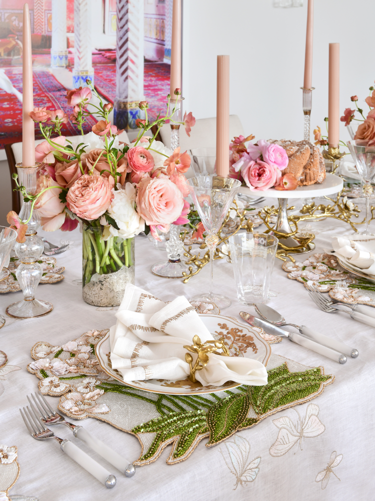 This Mother’s Day, take time to create a table setting that shows your love and appreciation for mom with gorgeous elements such as a placemat in a romantic shape, a petal-colored napkin and floral napkin ring.