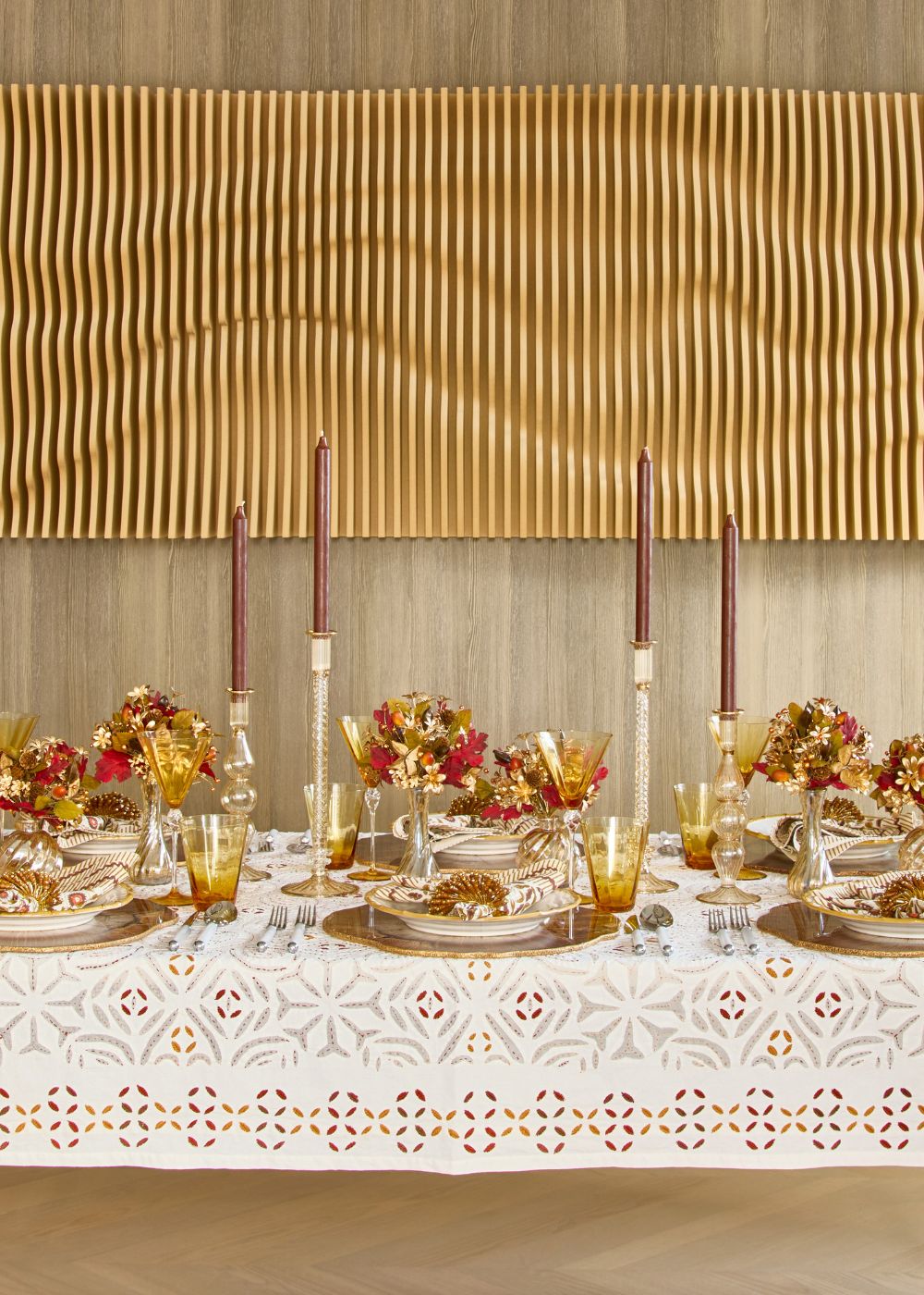 Channel the spirit of the West with weathered wood accents by the flickering glow of glassware and candlelight.