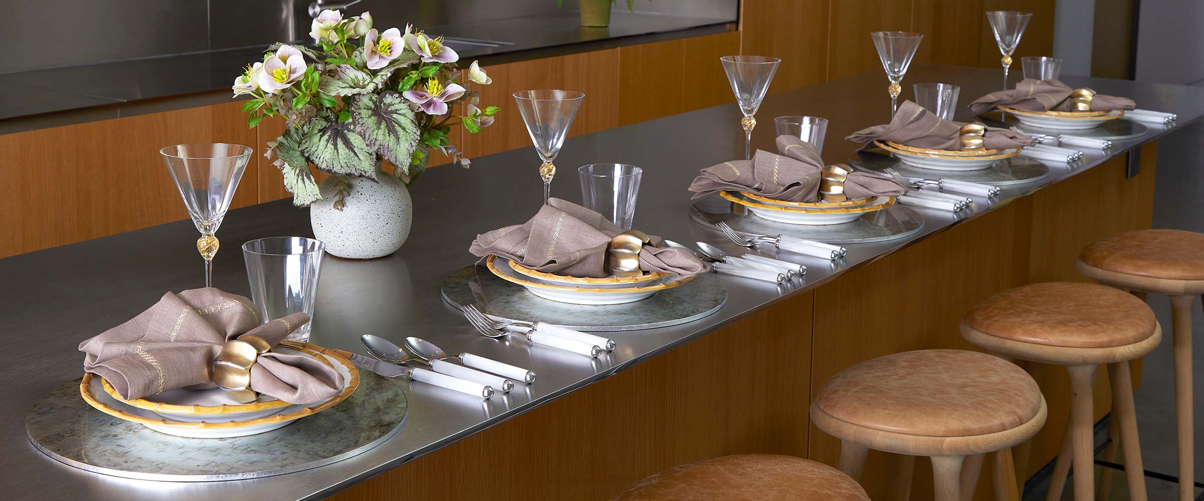Gilded Spray Napkin Ring in Gold & Silver, Set of 4