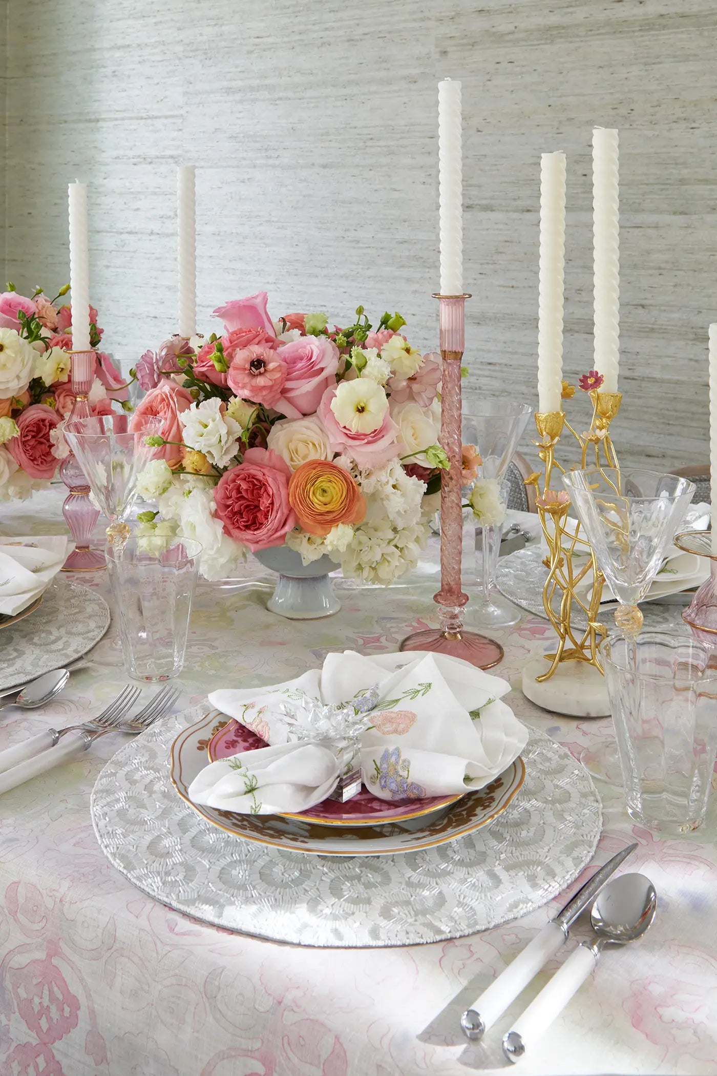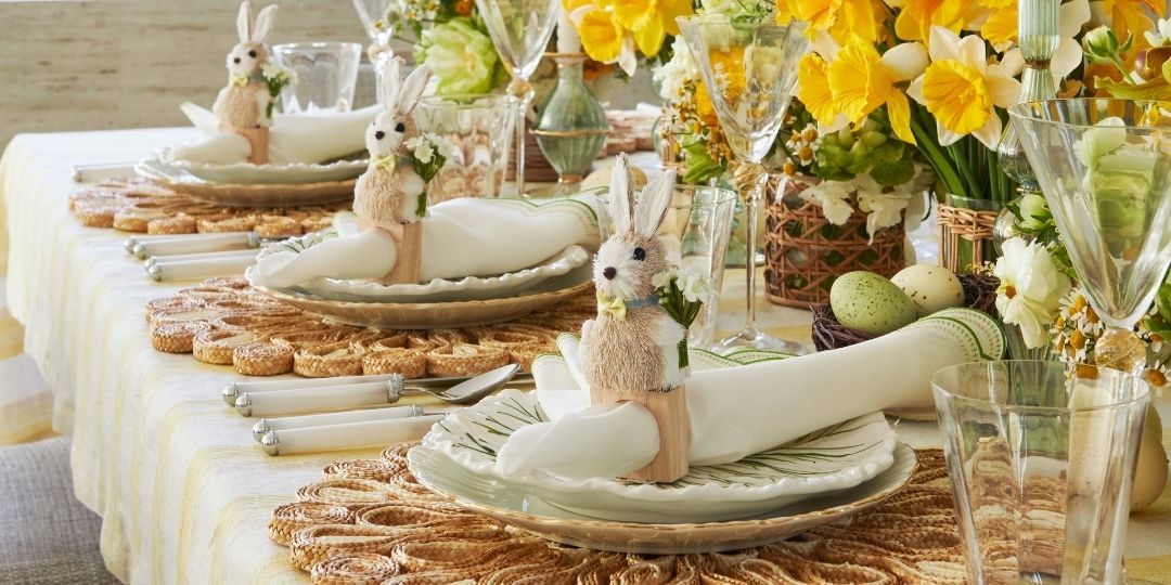 “Kim Seybert’s beautifully elaborate Dahlia Table Runner is the ultimate way to ring in springtime and complete your Easter tablescape.”