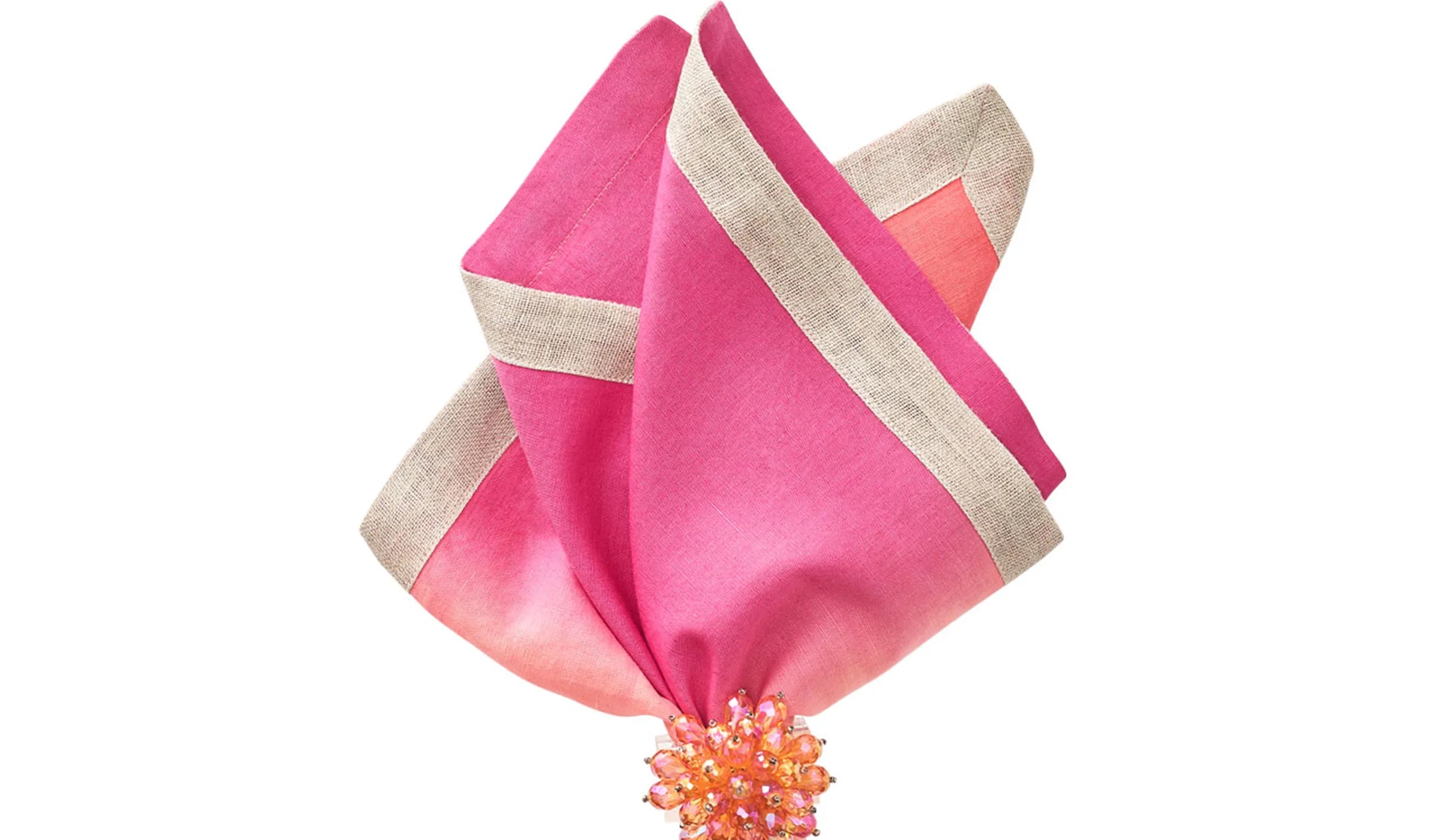 Select your shade from our Linen Dip Dye Napkins, each hand-dyed in flowing gradients and uniquely defined by artisanal color variation.